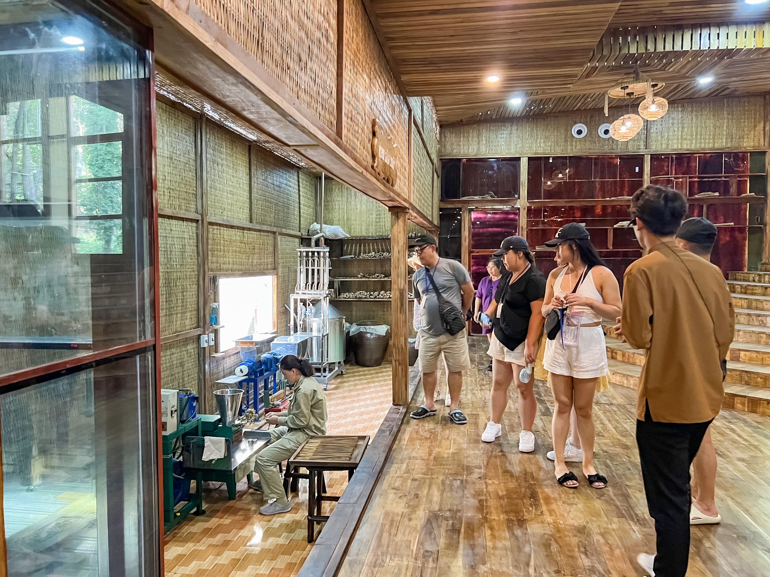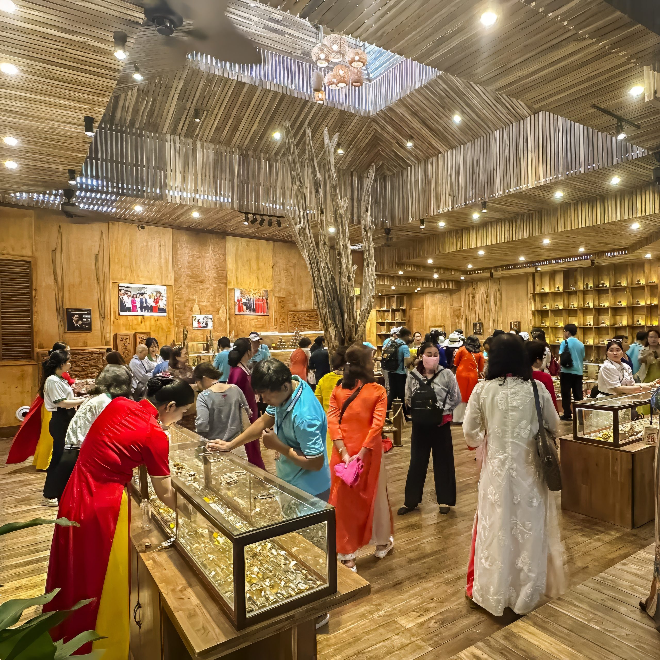 Du khách chen chúc tại showroom rộng lớn, tay cầm những hộp nhang nụ, vòng tay trầm hương, bình tinh dầu… Nhân viên tư vấn nhiệt tình, nghệ nhân cách xông trầm hương ngay tại chỗ. Không khí càng thêm phần sôi động khi có workshop xỏ vòng tay và thử rượu trầm miễn phí. Nhiều gia đình chọn Đảo Yến làm điểm dừng chân cuối năm để vừa sắm trầm hương vừa chụp ảnh check-in Tết.